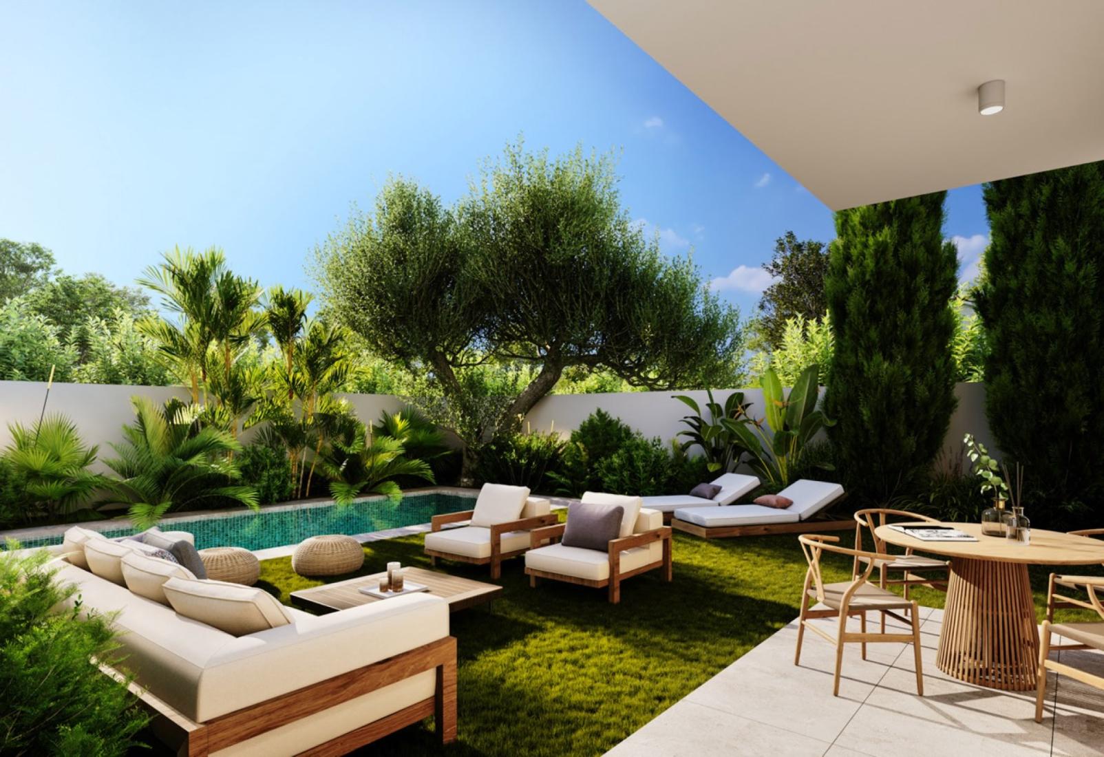 An outstanding design, a small building with only 4 apartments delivered to the highest standards with convenient and easy access to all areas located in a peaceful residential area of Engomi, minutes away from the city centre. The apartment offers 1 bedroom on the ground floor (15sq ) Pool is optional. There is also covered veranda in the garden of 11sq
