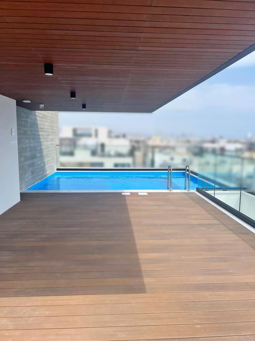 Experience elevated living in this brand-new full-floor penthouse spanning the 4th and 5th floors. Designed for privacy, comfort, and modern luxury, this exceptional residence offers spacious interiors and stunning outdoor areas. The penthouse features 3 bedrooms, including a master suite with private verandah, 4 toilets, 2 showers, and 1 bathtub. With 134 m² of covered living space, 55 m² of covered verandas, a 12 m² private garden, and a 100 m² roof garden, the home provides generous indoor and outdoor living. Enjoy a private rooftop oasis with swimming pool, sauna, BBQ area and landscaped plant garden with automated watering. Multiple verandas and a unique internal garden in the living room enhance the sense of space and tranquility. High-end finishes include real wood parquet flooring, underfloor heating, central VRV air conditioning, photovoltaic system, and fully equipped kitchen with premium appliances. The property also offers two covered parking spaces, provision for EV charging, and full security system with cameras and alarm. A rare opportunity for luxury penthouse living with exceptional amenities and complete privacy.