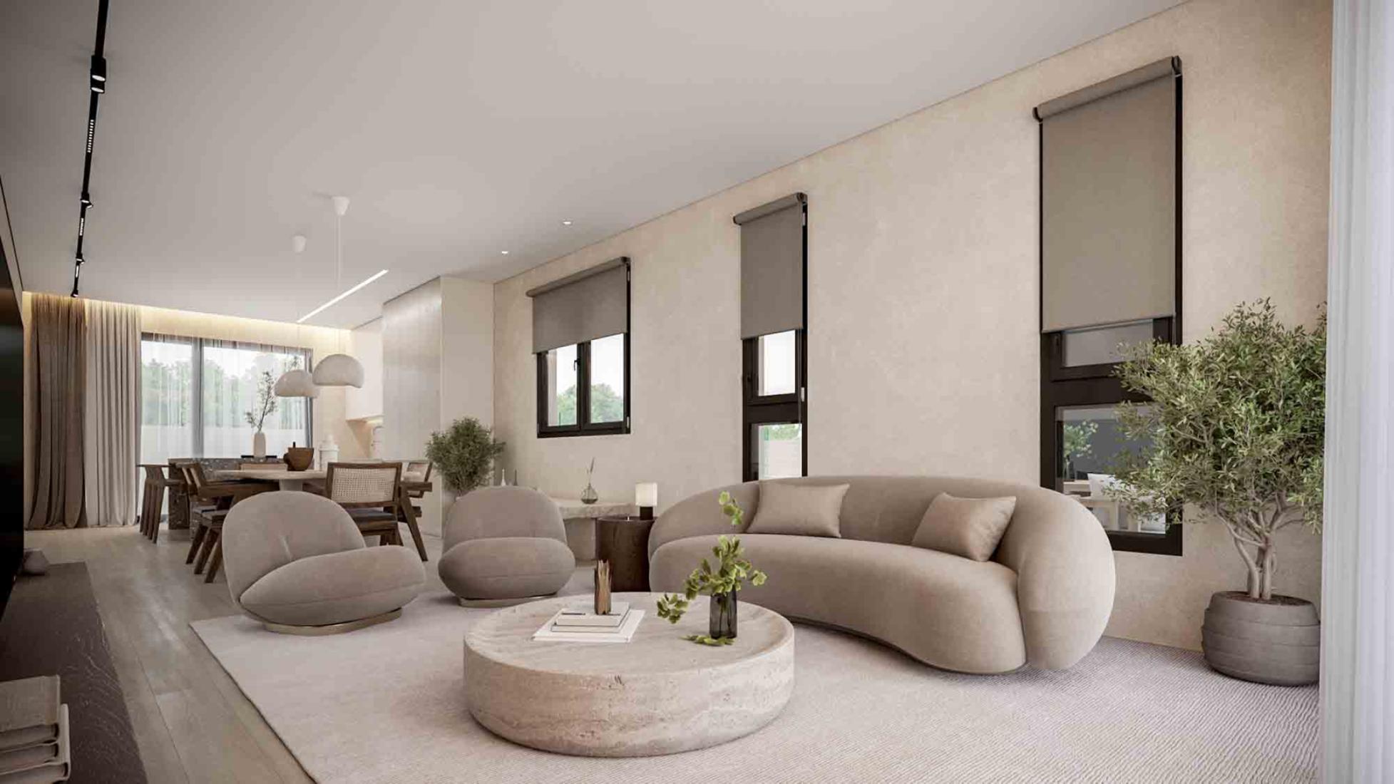 These stunning Villas offers tranquility and relaxation, while at the same time it is centrally located between Kapparis and Pernera , two areas that are active all year round. Each residence has its own private swimming pool and garden, which ensures the privacy of each and every one. The exterior design of the residences was done in a way that highlights the natural environment, with wood, metal and stone dominating, creating a modern yet timeless design. In the interiors of the residences, prevails natural shades, with the design highlighting the contrasts of different materials which blend harmoniously together.