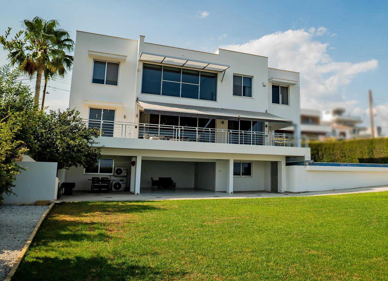 This exceptional three-level villa for rent sits on a spacious 1,200m² plot, combining luxury, modern design, and cutting-edge technology. Fully renovated in 2023, it offers a contemporary lifestyle in a prime Limassol location. The ground floor includes an independent studio with a private bathroom, two additional rooms, an office (which can serve as a bedroom), and a fully equipped laundry room. On the main level, you'll find a separate designer kitchen with two island bars—one seating up to seven—a large open-plan dining and living area, guest toilet, and a 120m² veranda with panoramic views over Limassol Bay. The upper floor features three bedrooms (two en suite) and a cinema-style living room with a surround sound system. Modern amenities include a photovoltaic system, full alarm and video intercom with remote access, high-speed Wi-Fi, smart home technology, automatic irrigation, an electric gate, and two covered parking spaces. With its sleek architecture, breathtaking views, and convenient yet private setting, this villa offers an exclusive lifestyle opportunity in Limassol.