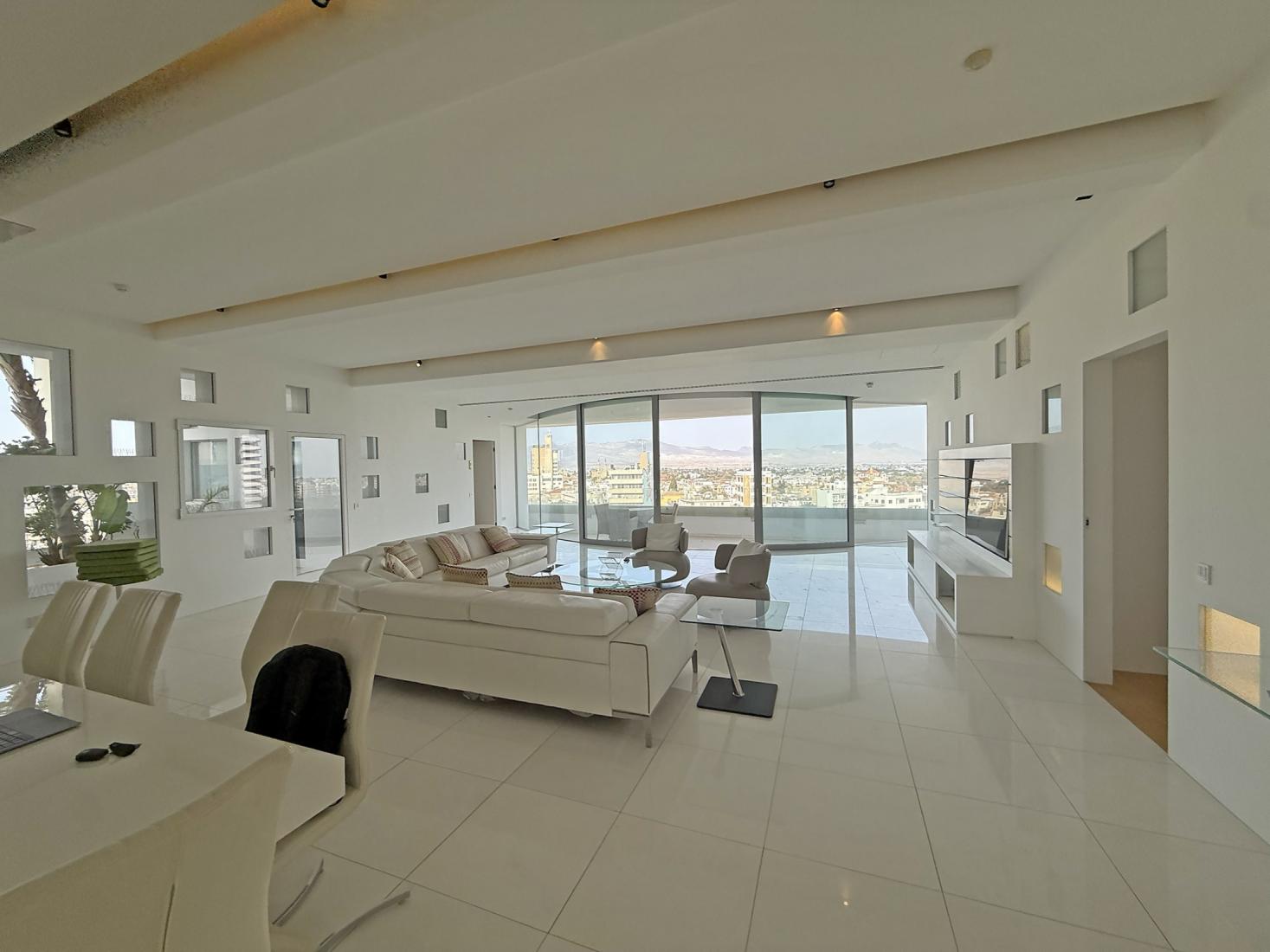 Perched within one of Nicosia’s most iconic landmark buildings, designed by a renowned architect, this full floor apartment redefines luxury urban living. Stepping inside, you are greeted by vast, light-filled interiors that merge sophistication with comfort, a grand living area, elegant dining space, and a beautifully appointed Italian kitchen with a sleek central island, perfect for both everyday living and effortless entertaining. Four spacious bedrooms, each with its own ensuite bathroom, offer privacy and tranquility, while the expansive verandas capture panoramic city views, the perfect setting for a morning coffee or sunset gathering. Every detail speaks of quality and refinement: Italian-designed furniture, a private jacuzzi on the terrace, and finishes that blend modern aesthetics with timeless style. Residents enjoy exceptional services including 24 hour security, daily cleaning of common areas, and a dedicated gardener for the private and shared gardens. The apartment also includes three private parking spaces and a large 12 square meter storage room. A rare opportunity to own an entire floor in one of the capital’s most prestigious addresses, where architecture, design, and lifestyle come together seamlessly.