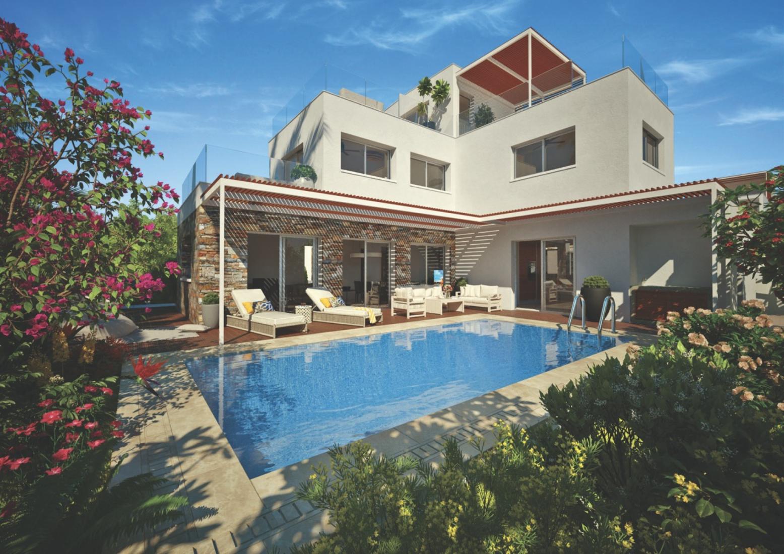 Modern 3, 4, and 5 bedroom villas set on spacious plots with private swimming pools and large terraces. Ideally located in the heart of Paphos’ tourist area, just steps from the sandy beach, and close to restaurants, beach bars, hotels, the waterpark, and Kings Avenue Mall.