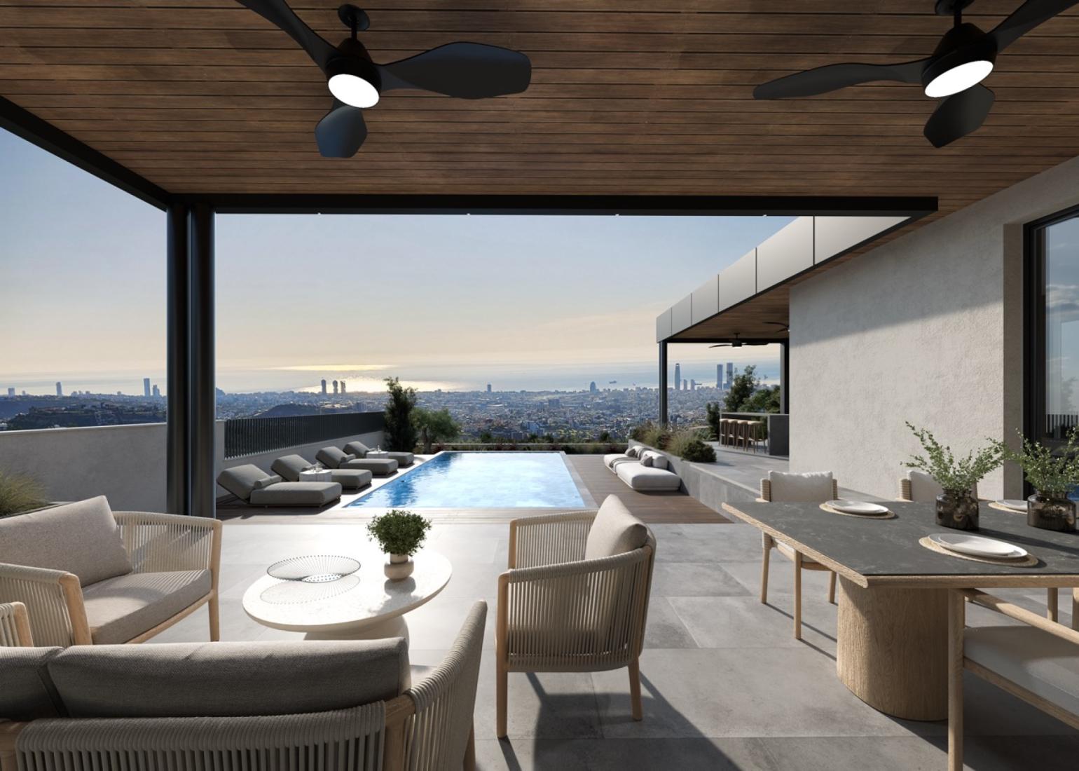 This exceptional luxury villa offers uninterrupted panoramic views of the sea and city, combining serene privacy with easy access to central Limassol. Designed to the highest standards, the residence showcases refined architecture, expansive open plan living spaces, and exquisite top quality finishes throughout. Floor to ceiling windows flood the home with natural light and frame the stunning landscape, while elegant design elements create a seamless blend of comfort and sophistication. The home includes generous living and entertainment areas, a private pool surrounded by landscaped gardens, and premium features such as underfloor heating, a private lift, smart home systems, and bespoke interiors. This is a rare opportunity to own a landmark property in one of Limassol’s most exclusive residential enclaves.