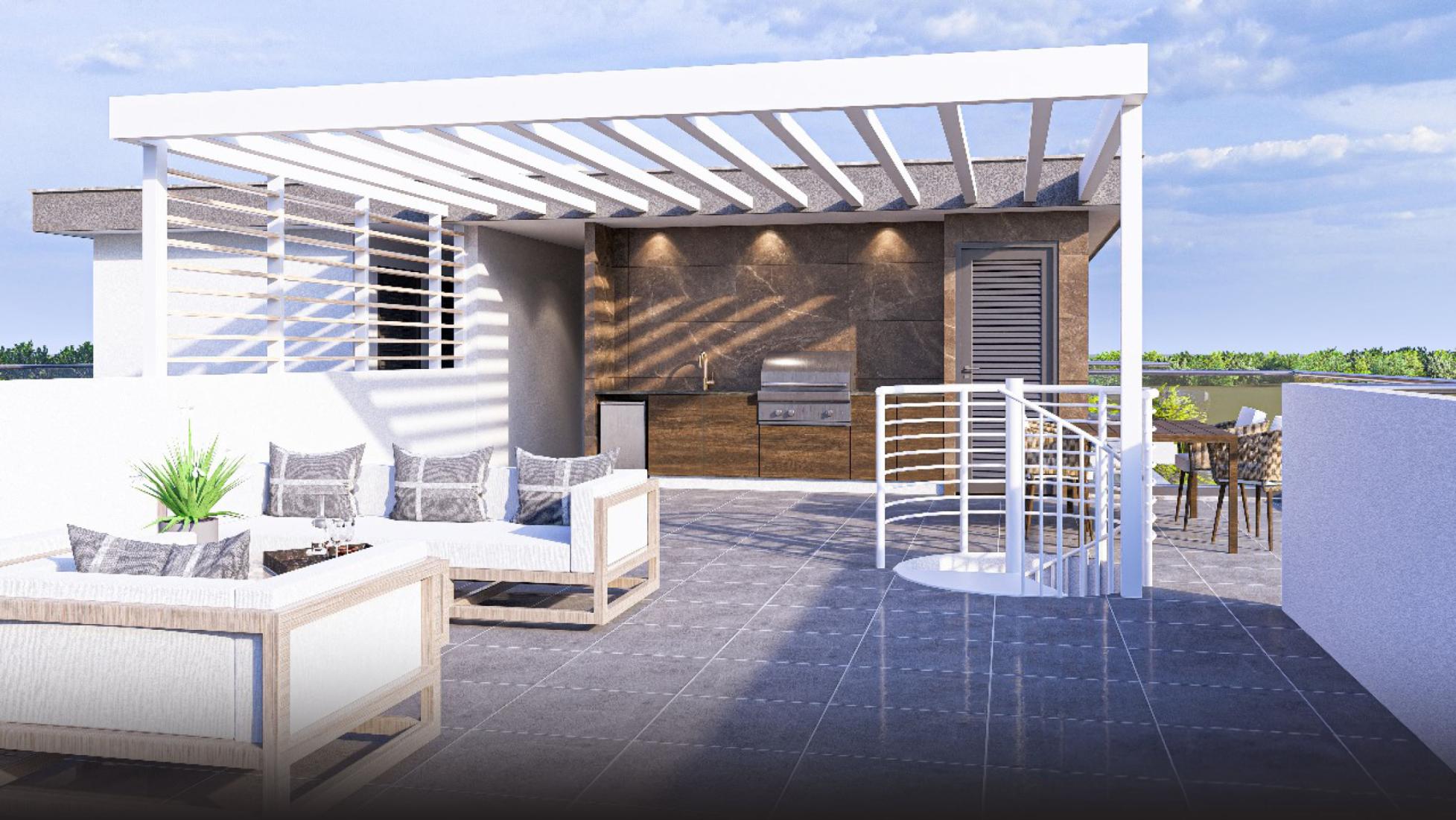 This stunning penthouse is located in the serene village of Kiti, just 10 minutes from Larnaca International Airport and 15 minutes from the town center. Combining tranquility with convenience, the residence is close to all essential amenities including supermarkets, schools, and offers easy access to highways. This exclusive penthouse offers the added luxury of a private, expansive roof garden with breathtaking views of the prestigious neighborhood. High quality finishes, such as Italian ceramic and elegant glass balconies, enhance the contemporary design. Designed for modern comfort and elegance, this penthouse provides privacy, outdoor living space, and a quiet family-oriented environment—perfect for those seeking a luxurious home in the sun.